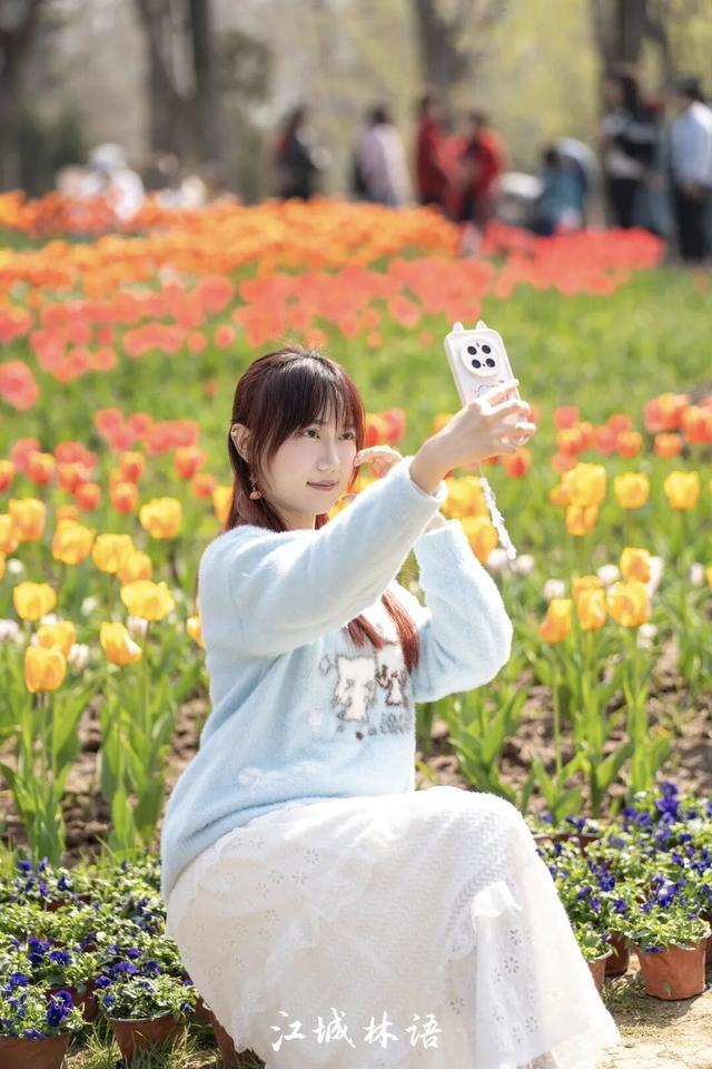 ⊙市民在花海间打卡拍照