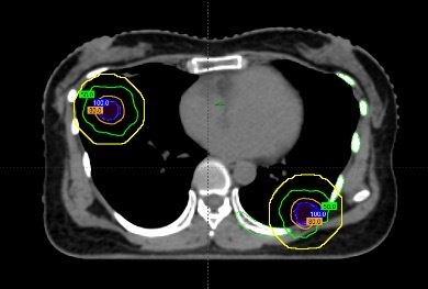 面对这样的难题,湖南省肿瘤医院胸部放疗二科胡英教授团队联合放疗综合技术部,采用了EDGE速锋刀立体定向放疗。