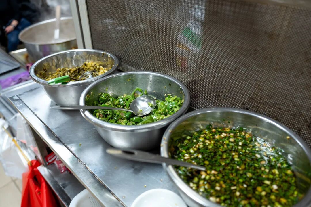 这家粉店口味偏清淡,小料台有自制的酸菜辣椒葱酱,一等美味。加入小菜后,猪脚粉的风味都华丽升级了。