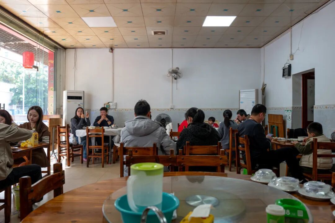 这家店生意好得很,来店吃饭要赶早。我是周中一点去的,留给我的位置只剩下“拼好桌”了。