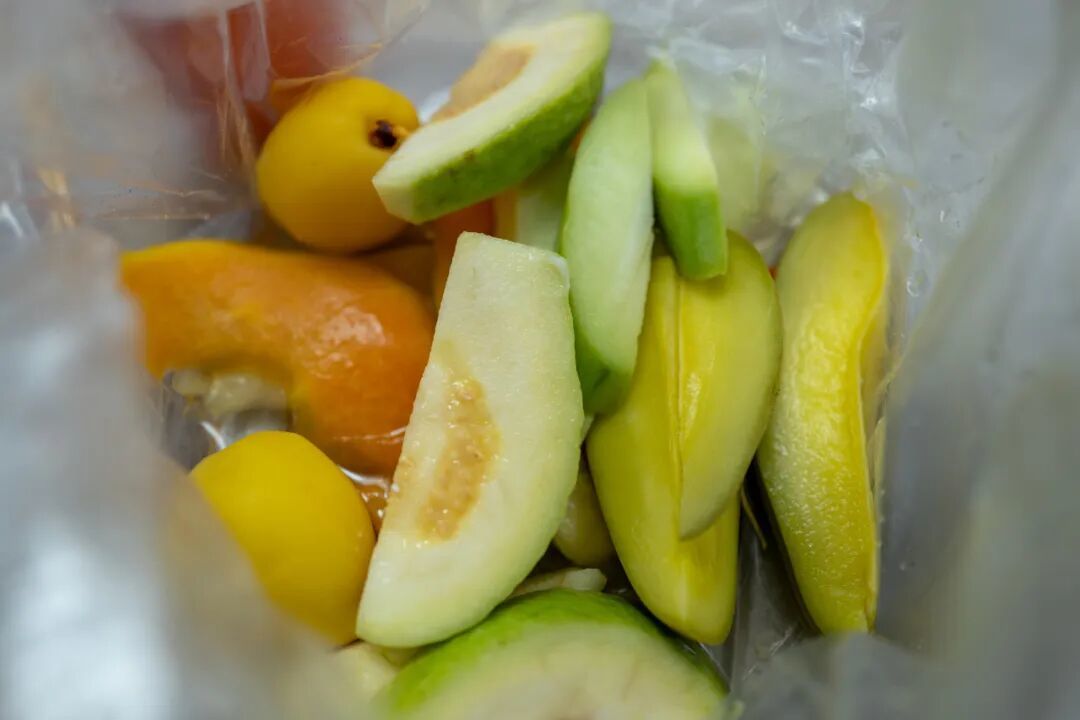 这家店胜在sku多,有芭乐、桃子、青木瓜之类的水果,也有藠头、荠菜、白萝卜等蔬菜。
