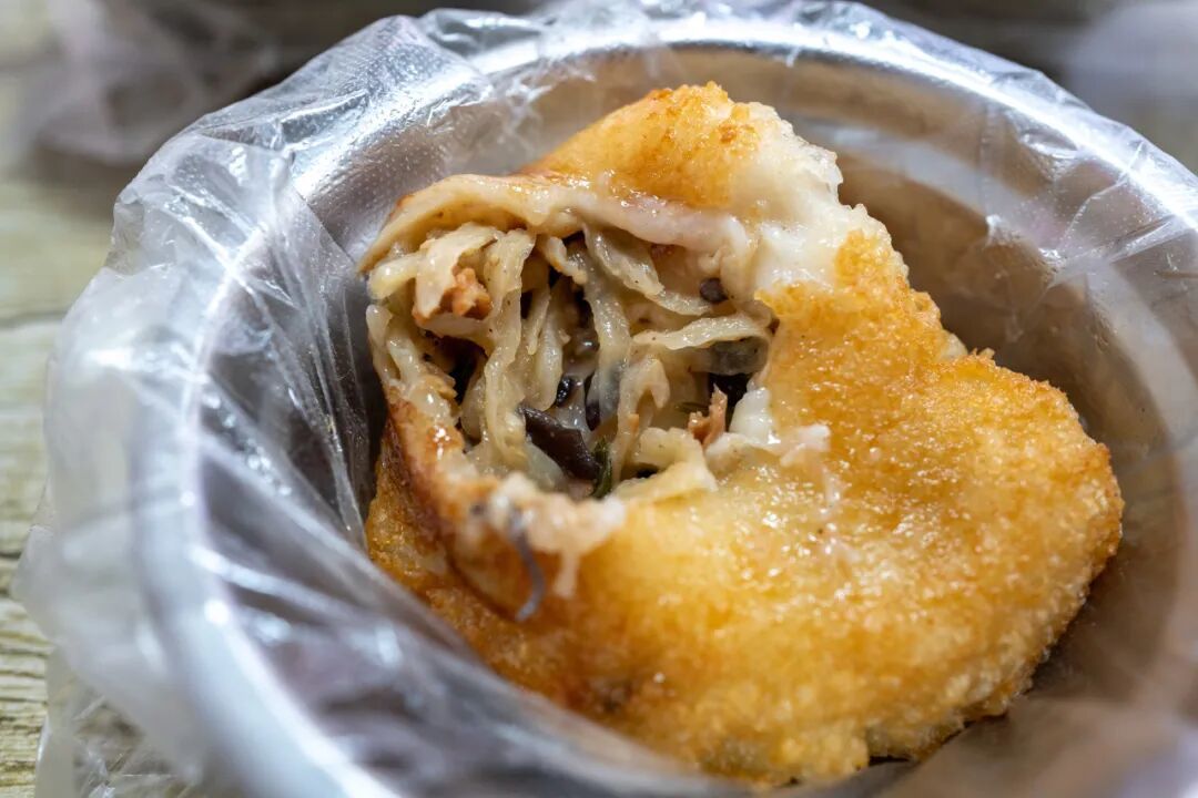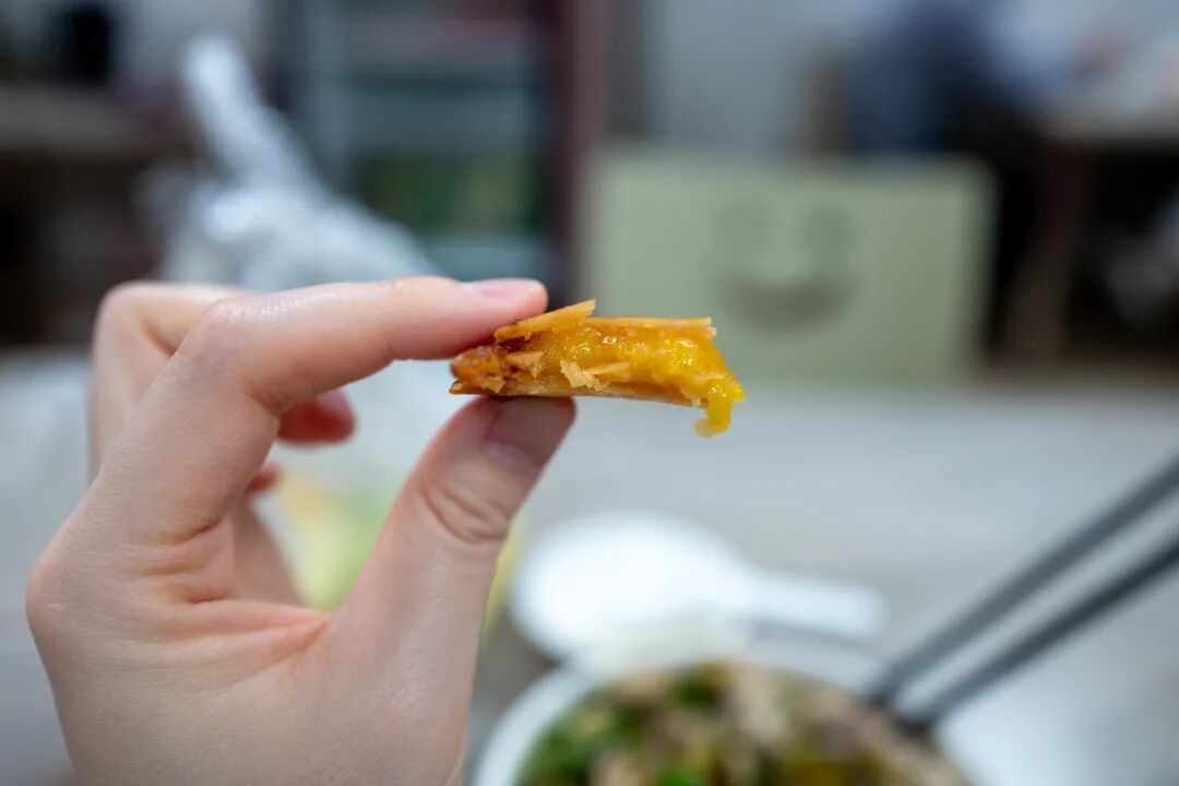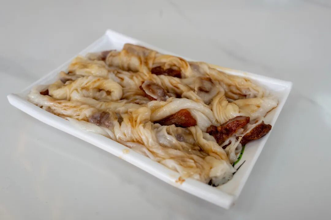 不同于广式肠粉的细腻爽滑,河源肠粉更扎实,有嚼劲。强推炸肉肠粉,炸肉外衣焦脆,淋上甜咸口的酱汁,很落胃。