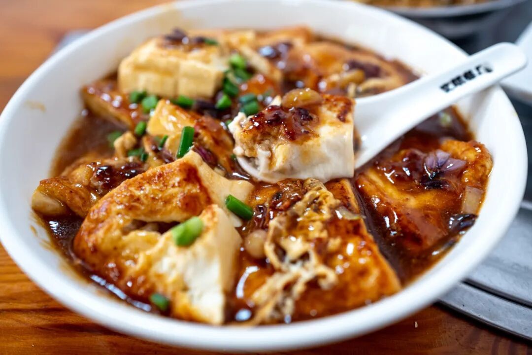 这道菜用的是嫩豆腐,更考验厨子的颠勺的手法。